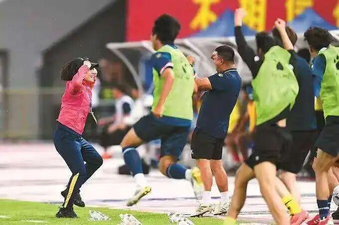 一头简单的过肩长发,一身利落的运动服,看起来英姿飒爽的周高萍是“苏超”唯一的女性主教练。